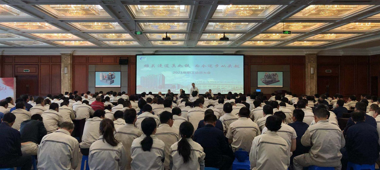 最后,總經(jīng)理來(lái)逢政在大會(huì)上發(fā)表講話,首先肯定了自公司成立以來(lái),從最初的組建走向成熟所取得的進(jìn)步及成績(jī),他指出公司在2020年市場(chǎng)大環(huán)境惡劣的情況下還能逆勢(shì)發(fā)展與公司每一位員工的努力付出密不可分。今年公司面臨的內(nèi)外部市場(chǎng)交付壓力更大,對(duì)生產(chǎn)效率、服務(wù)質(zhì)量也提出了更高的要求,與此同時(shí)也伴隨著更大的發(fā)展?jié)摿蜋C(jī)會(huì),公司上下要擰成一股勁,保質(zhì)保量的按時(shí)交付訂單,提升公司的生產(chǎn)規(guī)模,穩(wěn)定生產(chǎn)車間的產(chǎn)值效益,提高職工收入水平,讓每位員工獲得發(fā)展機(jī)會(huì),和金通靈共同成長(zhǎng)。
