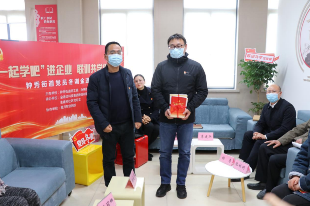 近日,金通靈公司在企業職工書屋內,舉辦了一場“情境式”微宣講黨員活動。鐘秀街道黨工委副書記胡建華、黨委委員史麗娜,金通靈、生建村社區、星月智創園區黨員代表參加了活動。